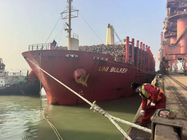 近日,廣州輕工集團(tuán)輕出公司原木散貨船“優(yōu)妮”號(hào)順利靠泊山東嵐橋港,標(biāo)志著2025年度原木進(jìn)口項(xiàng)目圓滿收官。截至2025年12月,輕出公司全年累計(jì)進(jìn)口新西蘭輻射松原木13船、總貨量約50萬立方米,較去年翻倍,項(xiàng)目營收增長超70%,創(chuàng)下年度進(jìn)口量歷史新高。